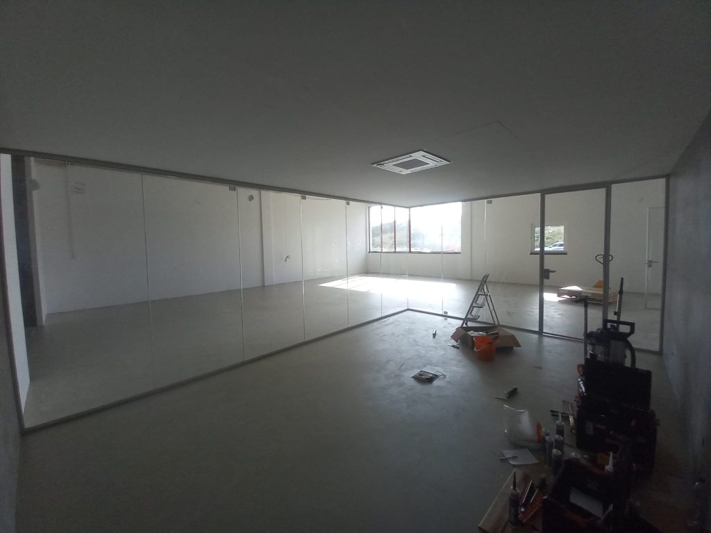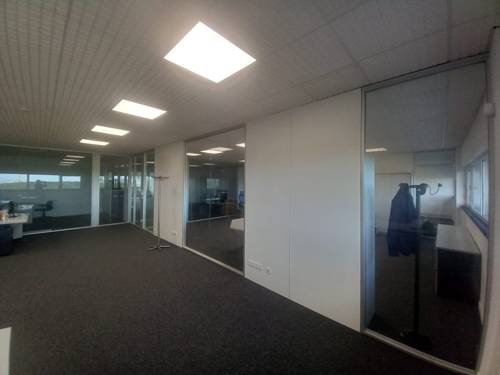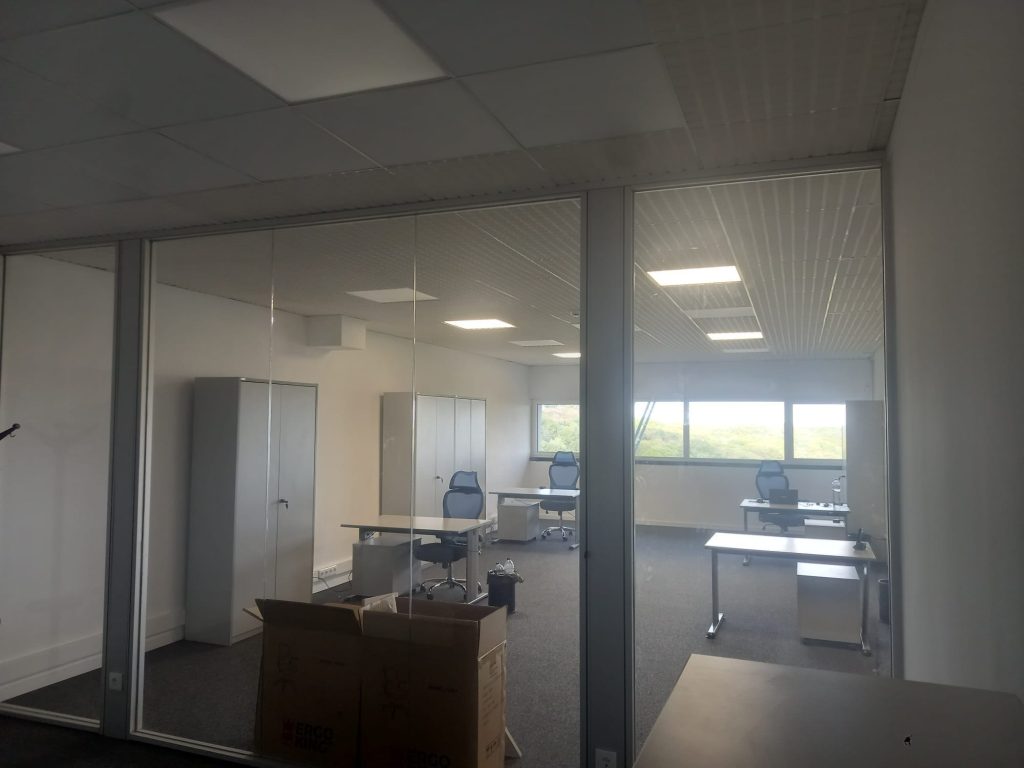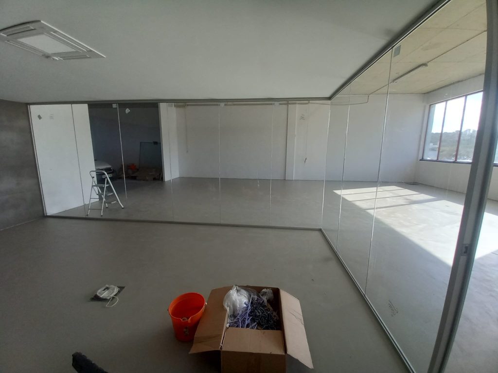 Divisórias em vidro laminado e perfil de alumínio minimalista marca Funcional